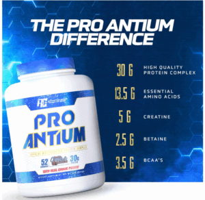 Pro-Antium® is a multifaceted protein blend intended for complete recovery. This multifunctional blend contains a precise combination of fast, medium, and slow digesting proteins for optimal recovery providing you with a continuous stream of protein long after your workout is complete. * Each serving also contains 13.5g of Essential Amino Acids (EAA’s) as well as 3.5g of Branched Chain Amino Acids (BCAA’s). * Pro-Antium®doesn’t just stop at the protein blend. We have also added 5g of creatine and 2.5g of betaine which have been scientifically proven to increase strength, power, and athletic performance. Betaine increases the efficiency rate at which the body absorbs protein, creatine, and amino acids into muscle cells by improving the body’s ability to break them down. * Betaine is highly synergistic when taken with creatine and protein. Betainemay lead to a higher concentration of creatine in the body as well as aiding in more efficient absorption and utilization of supplemental creatine.Betaine can also help the stomach to help break down proteins. New research supports that betaine can directly enhance muscle power and strength. *